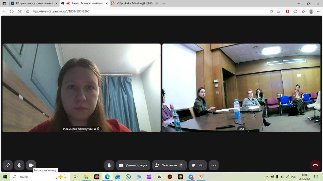 В свою очередь в режиме онлайн к работе секции "Религия и материальность. Современные подходы к изучению религии" присоединилась Ильмира Гафиятуллина. Спикер ознакомила коллег с результатами исследования деятельности мусульманских и православных религиозных деятелях в социальных сетях. В частности, она обратила внимание на много общих черт в ведении "онлайн-проповеди".