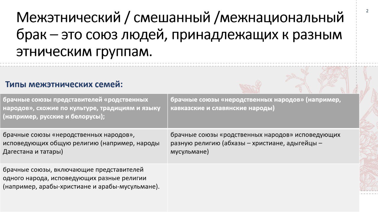 «Хочу отметить, что при вступлении в межконфессиональный брак супруги, как правило, сохраняют свою религиозную принадлежность. Воспитание детей чаще всего осуществляется в рамках одной из религий, либо детям предоставляется право выбора религии во взрослом возрасте, либо применяется практика религиозного секретизма. Кроме того, были зафиксированы случаи, когда один из супругов менял религию в пользу веры партнёра, вступаю в такой брак. При этом, несмотря на широко распространённое мнение, что религиозную конверсию чаще совершают женщины, в исследовании выявлены и примеры, когда мужчина принимал веру супруги», – отметила Татьяна.